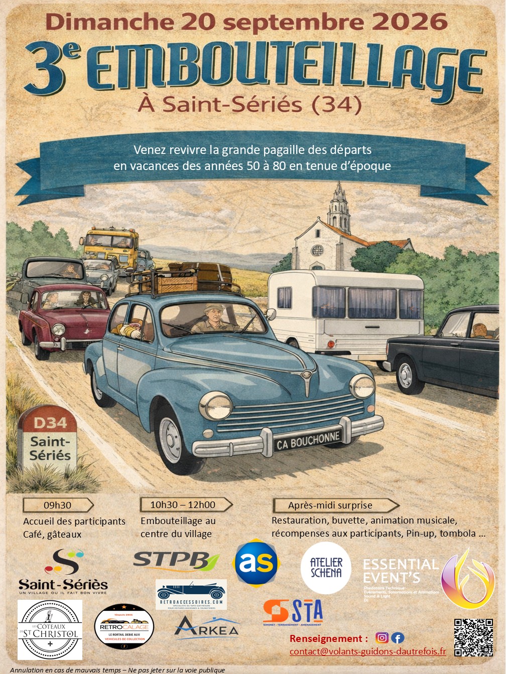 L’embouteillage de véhicules anciens à Saint-Sériès est un événement incontournable pour les passionnés de véhicules classiques.